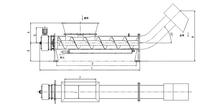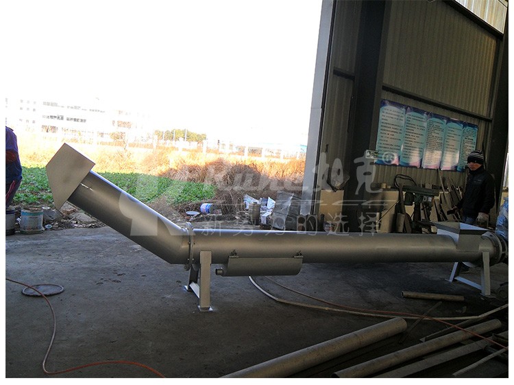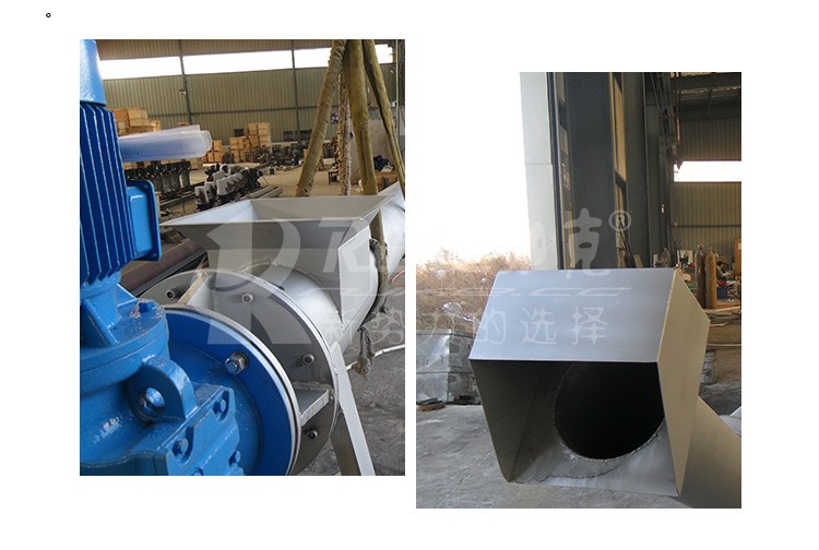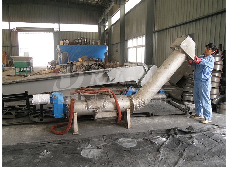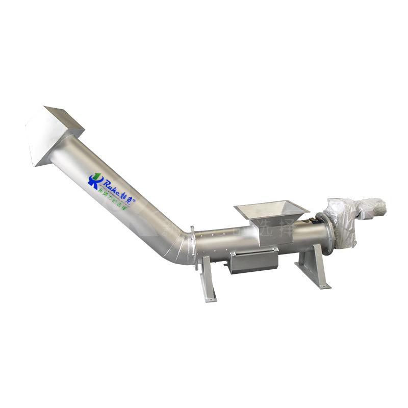 构造及工作过程: 螺旋压榨机由挤压螺旋、螺旋管、传动部件、进料斗及卸料斗等组成。污物由进料斗进入螺旋管,在挤压螺旋的作用下,压缩、脱水后输送至出渣口